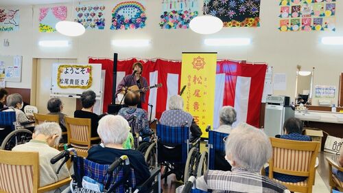 本日は琵琶湖の東エリアで03公演! 午前中は7年ぶりに特別養護老人ホームスマイルさんへ。前回訪問した際に先進的なベッドのセンサーシステムを見学させていただき、とても記憶に残る施設でした。縦長の会場も個性的。施設長さんの退職に間に合って良かった…